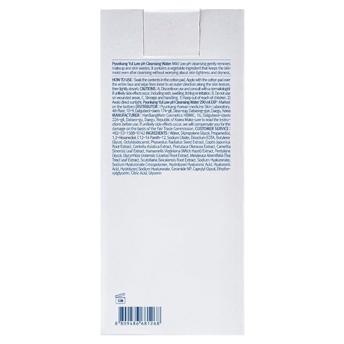 • WHY PYUNKANG YUL? - Along with know-how recipe of Pyunkang Yul Eastern Medicine Clinic, specialized in helping skin and respiratory diseases for about 50 years, the cleansing water helps to remove make up and calm the skin by carefully selected ingredients found in nature and rigorous testing.