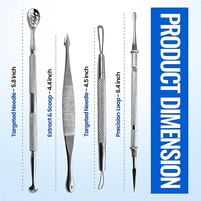 • Durable: The pimple popper tools are made from stainless steel, It won't cause issues, our acne extractor Tools are great for any occasion, blackhead extractor blackhead remover flat tool blackhead remover tools scraper pimple extractor pimple extractor spatula pimple tool pimple tools extractor metal blackhead extractor black head remover for face.