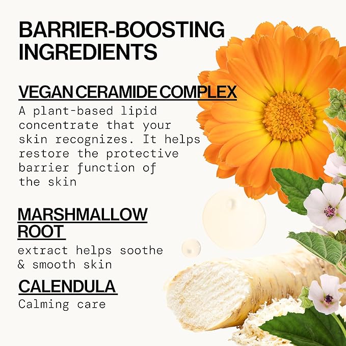 • Vegan Ceramide Barrier Care – Infused with plant-based ceramides that help restore and strengthen the skin’s protective barrier. Supports moisturization and soothes dryness, leaving sensitive skin calm, soft and nourished after cleansing. Ideal for easily irritated or eczema-prone skin.