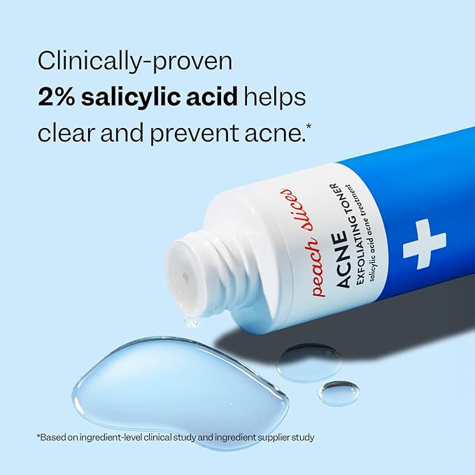 Peach Slices | Acne Exfoliating Toner | 2% Salicylic Acid | AHA+BHA Exfoliation | Facial Cleanser | Calms & Soothes | Prevents Breakouts | Alcohol & Sulfate Free | Skin Care for Women & Men | 4 Oz