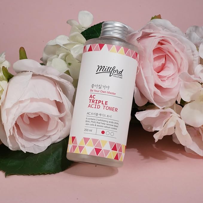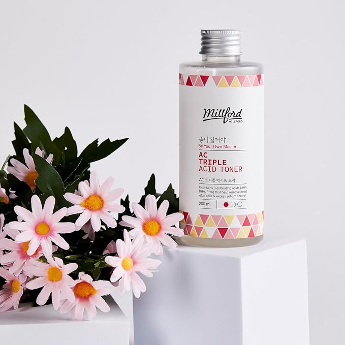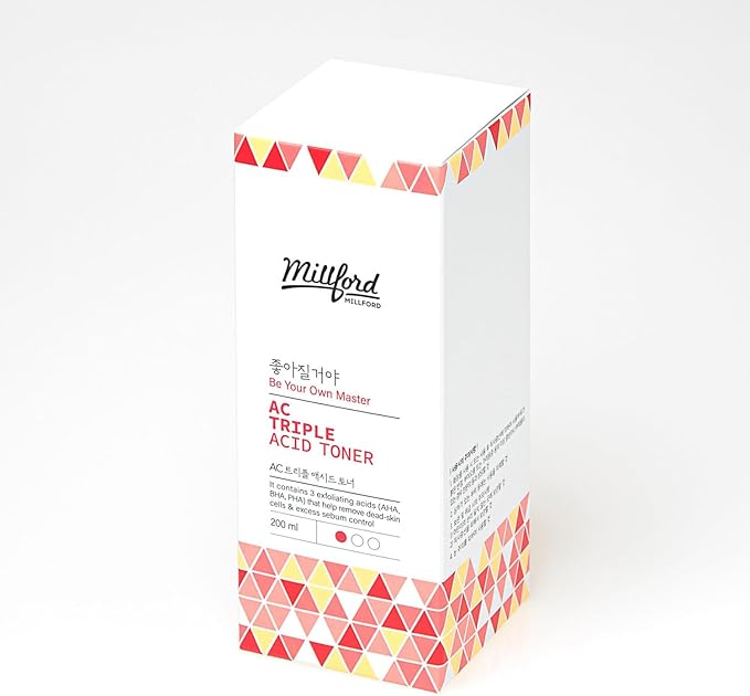 AC Triple Acid Toner 6.76 oz/200 ml – AHA/BHA/PHA Exfoliating & Hydrating Facial Toner with Salicylic Acid & Glycolic Acid for Oily Skin, Pore Cleaning, Acne & Sebum Control, Korean Skincare