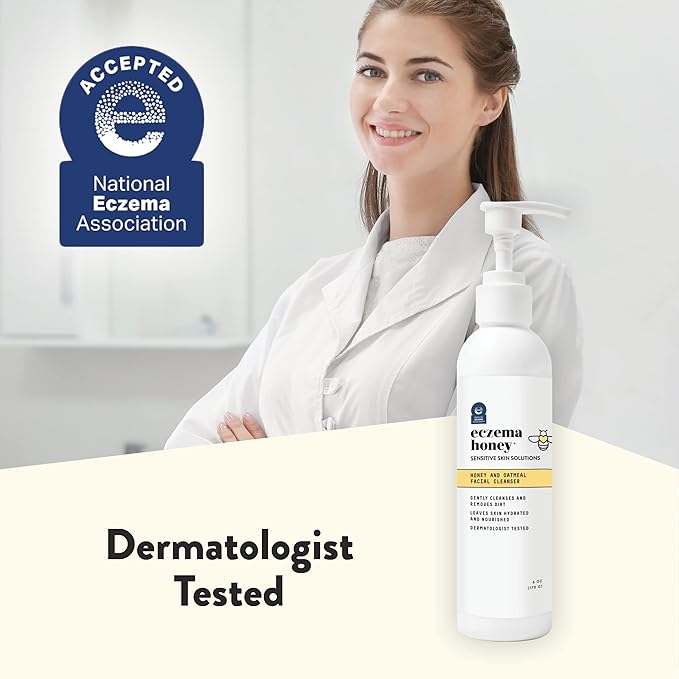 ECZEMA HONEY Oatmeal Facial Cleanser - Natural Eczema Face Wash Prevents Breakouts - Daily Gentle Face Cleanser for Dry, Itchy, Sensitive, & Irritable Skin (6 Oz)