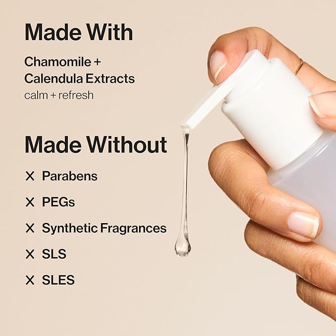 • MADE WITH: Chamomile and Calendula Extracts to calm and refresh