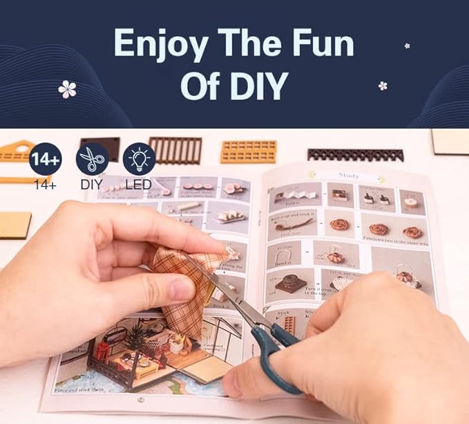 • 🌳 English Instructions: English manual with detailed and colored pictures will guide you how to do step by step. We want to encourage you it easy to assemble just a little patience. Further more, YouTube video teaching how to resemble the entire miniature, just search "DIY dollhouse".