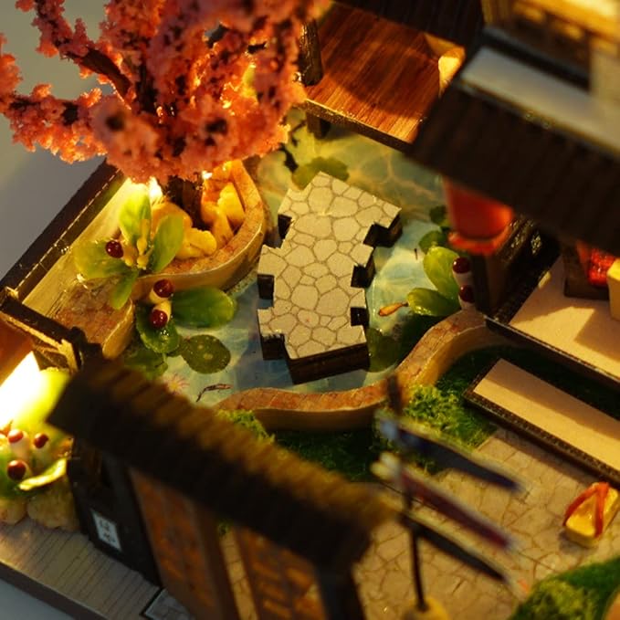 CUTEBEE Dollhouse Miniature with Furniture, DIY Wooden Dollhouse Kit Plus Dust Proof, Creative Room Idea (Japanese Garden House)