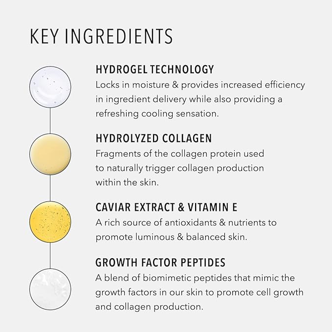 • Antioxidant Infused: Peptides, Niacinamide, Caviar Extract, Hydrolyzed Collagen and Vitamin E provide a rich source of antioxidants, promoting a better complexion after just one use. Perfect for a quick fix with cumulative anti-aging benefits over time