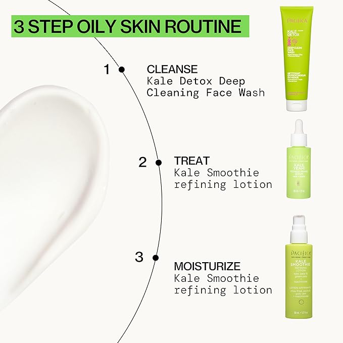 Pacifica Kale Smoothie Face Lotion, Refining Skincare, Face Moisturizer, Niacinamide, Vitamin C and E, Minimize Pores, Face Serum, For All Skin Types, Oily, Combination, Vegan, 1.7 fl oz (1 Count