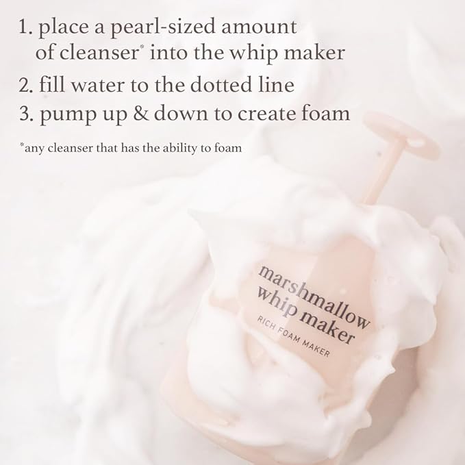 • HOW TO USE: Place a pearl-sized amount of Snowflake Whipping Cleanser into the Whip Maker. Fill water to the dotted line. Pump up & down to create rich, marshmallow-like foam. Use AM + PM, 2x per day.