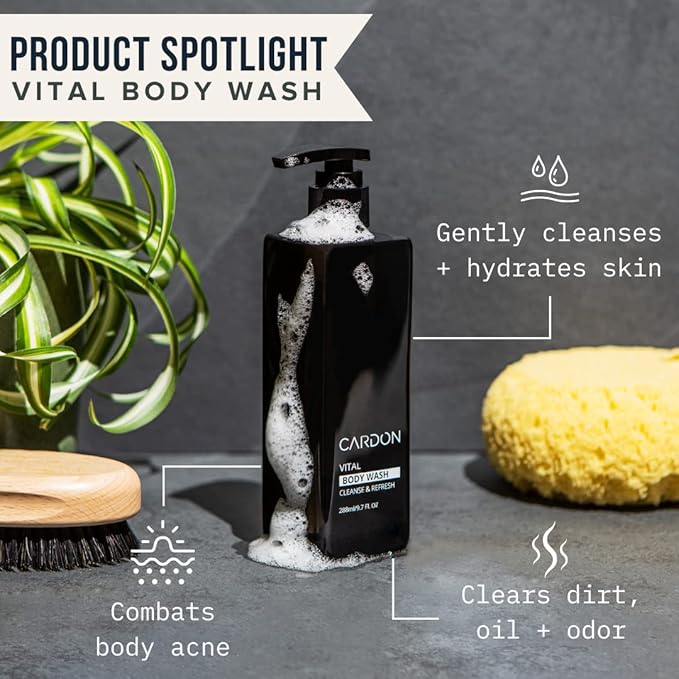 Cardon Acne Clearing Men's Body Wash, Korean Skin Care, All Natural Green Tea Extract, Sea Buckthorn, & Cica Combat Breakouts, Prevent Body Odor to Deeply Cleanse w/o Stripping (1 PK)