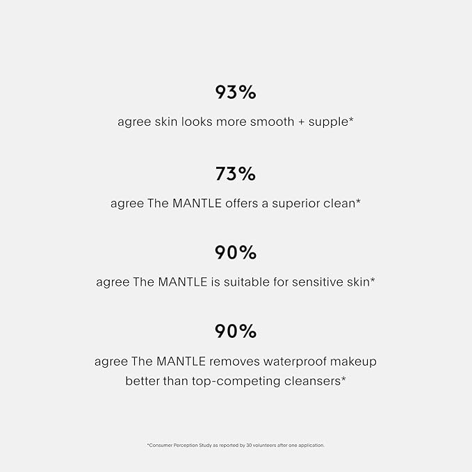 • MAKEUP-REMOVER: The MANTLE melts away water- and oil-soluble debris—including waterproof makeup, sunscreen, dirt, sweat, and pollutants—without stripping the skin, ensuring a deep cleanse without moisture barrier impairment or uncomfortable tightness