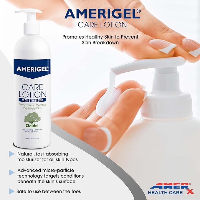 AMERIGEL Care Lotion Bundle - Hypoallergenic Moisturizer (6 oz.) Rehydrates & Soothes Dry Skin - Care Lotion for Diabetic Skin Care (16 oz.) Soothes Irritated Skin