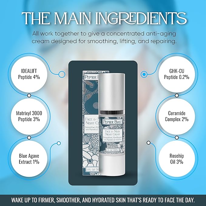 • Scientifically Backed Potency: Contains 5% niacinamide for smoothing, and balancing skin tone. Targeted Peptide Complex: Includes Matrixyl 3000 and Idealift peptides to visibly improve elasticity and reduce the appearance of fine lines and wrinkles. Deep Hydration: Hyaluronic acid and ceramides work together to restore moisture and strengthen the skin barrier. Blue Agave Extract: Soothes irritation and enhances the skin’s natural radiance. No Filler Ingredients: Every ingredient is included at its functional percentage—nothing added just for marketing.