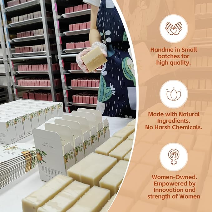 • Cold Processed Soap: Handmade in small batches using cold process method to retain purity and potency of natural ingredients.