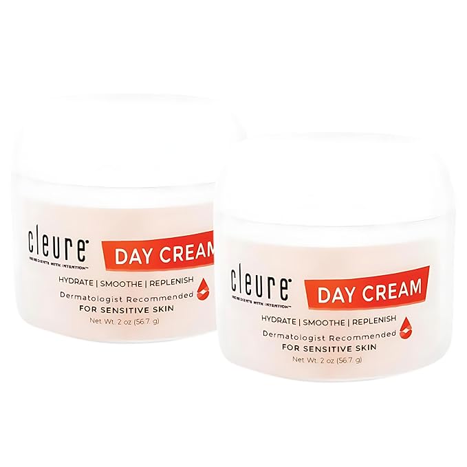 Cleure Anti-Aging Day Cream & Facial Moisturizer w/Pure Shea Butter for Sensitive Skin - Fragrance Free, Gluten, Salicylate and Paraben Free (2 oz, Pack of 2)