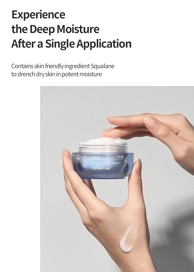 • HYDRATE WITHOUT THE WEIGHT. DERMAFIRM Moist Barrier Intensive Ceramide Moisturizer Facial Cream M4 delivers a highly concentrated blend of natural botanical extracts, eliminating the discomfort of heavy moisturizers. Its gentle and light formula hydrates the skin, providing a soothing sensation of moisture without the greasiness.