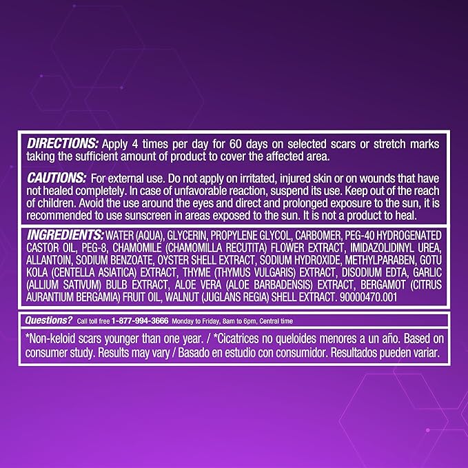 • [ CLINICALLY PROVEN RESULTS IN 2 WEEKS ]: Experience visible improvement in surgical scars, acne scars, and stretch marks in as little as 2 weeks. Results may vary. Follow product directions
