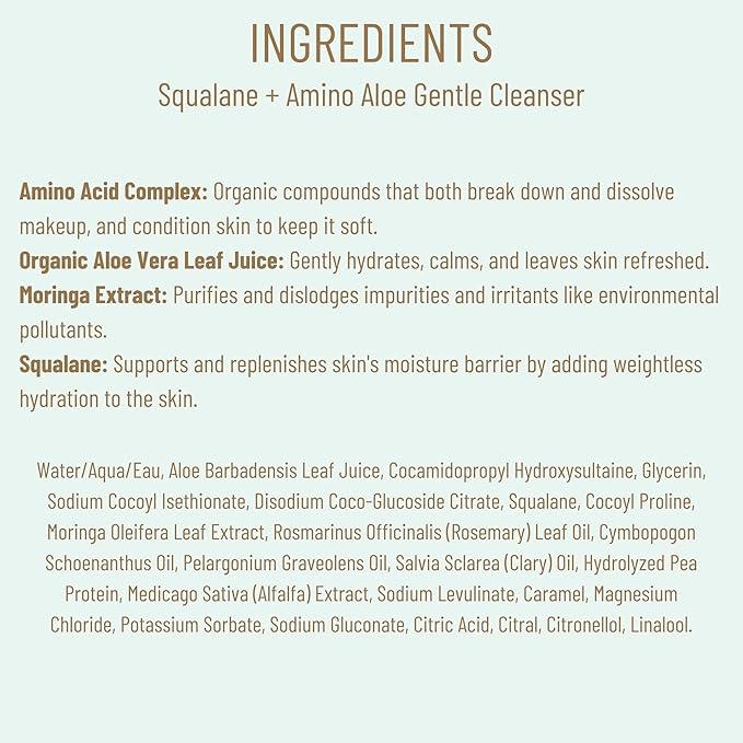 • DEEPLY CLEANSE AND REFRESH: Biossance Squalane + Amino Aloe Gentle Cleanser is your go-to foaming face wash, effortlessly breaking down makeup and impurities. Its unique amino acid complex targets stubborn dirt while keeping your pores clear from environmental debris, ensuring your skin feels fresh and rejuvenated with every use.