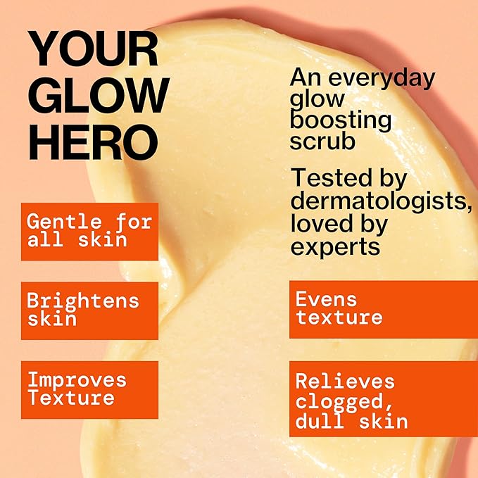 • GLOW BABY SUPER LIT ENZYME FACE SCRUB is a 2-in-1 chemical and enzymatic exfoliant packed with fruit extracts, vitamin C and glycolic acid to gently lift impurities and unclog pores, to help restore radiance and leave skin feeling softer and smoother.