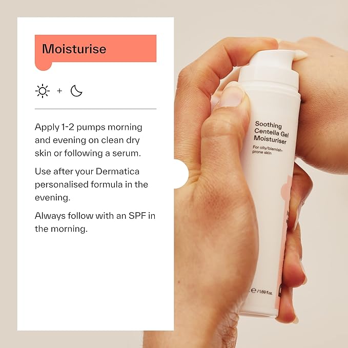 • Instructions: Apply 1-2 pumps in the morning and evening (after your Dermatica Azelaic Acid Cream and/or Hyaluronic Serum if you use them as part of your routine). Depending on the weather or how your skin feels, you can apply more than one layer.