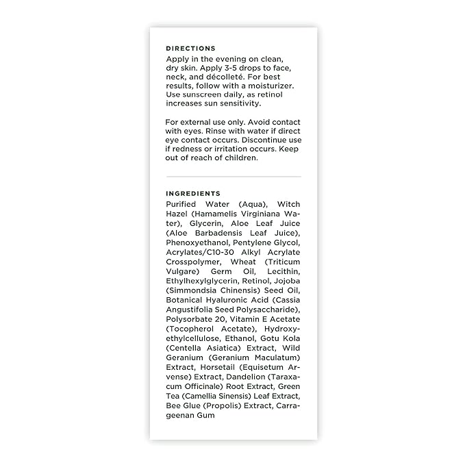 • EASY TO USE DIRECTIONS: Begin by cleansing and drying your skin thoroughly. Dispense 3-5 drops of the dark spot corrector and gently apply it to your face, neck, and décolleté area. To enhance the benefits, layer on a moisturizer after application. Remember to apply sunscreen every day, as retinol can heighten your skin's sensitivity to the sun.