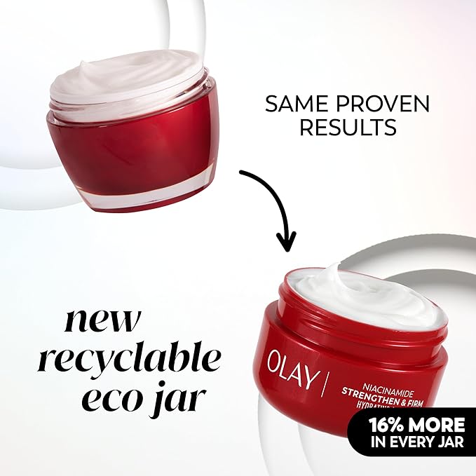 Olay Niacinamide Face Moisturizer, Strong & Firm Cream for Women, Anti-Aging, Anti-Wrinkle, Firming Skin Care, Evens, Hydrates to Repair Barrier, Recyclable Sustainable Eco Jar, Non-Greasy, 2 oz