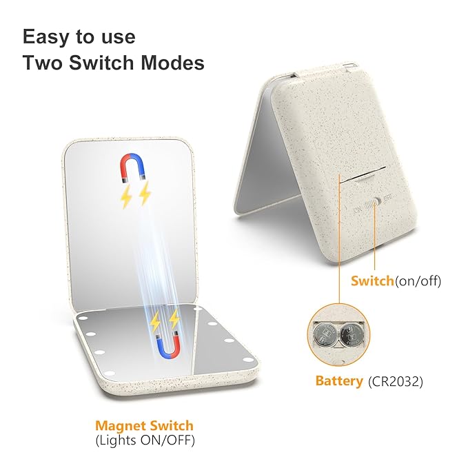 • 【Magnetic Switch】The double-sided mirror is magnetic and can be easily closed or opened, Easy to hold