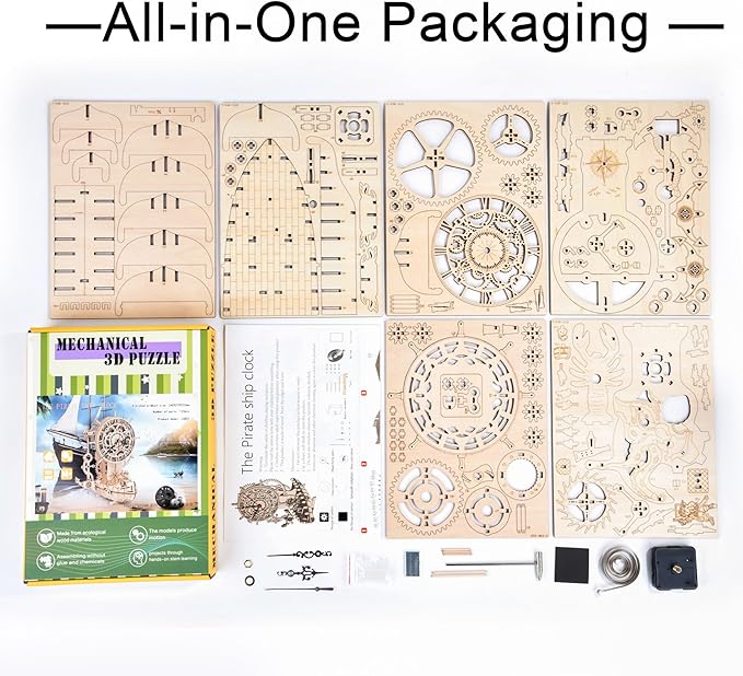 • MECHANICAL CLOCK PUZZLE:The Pirate Ship Clock Puzzle makes a stunning centerpiece, blending nautical adventure with timeless craftsmanship. Display it on a bookshelf, desk, or mantel and let its intricate details and moving gears spark conversation and capture attention.
