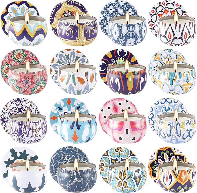• Scented Candles: This scented candle gift set offers 16 delicately clean and uplifting aromas, including Blue Bell, Peony Cherry Blossom, Guava, Lavender, Bonfires, Jasmine, Lemon, Vanilla, Gardenia, French Blackberry, Strawberry, Spring, Cinnamon, Chamomile, Fig, Peppermint.