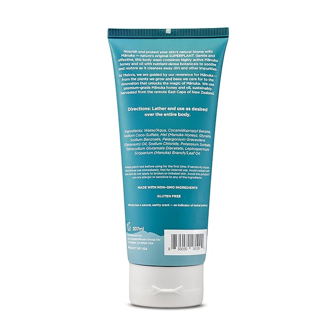 • Experience luxurious hydration with Melora Manuka honey & oil body wash (7 oz): your daily microbiome liquid soap for dry or oily skin infused with the unique power of Manuka honey’s restorative properties