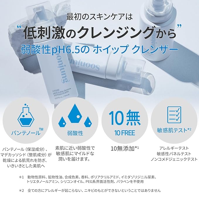 ETUDE Soonjung pH 6.5 Whip Cleanser New, Face Wash for Sensitive Skin, Soft Bubble, Hypoallergenic Cleansing, Low pH Level, Fragrance-Free, Panthenol, Madecassoside, Korean Skin Care (5.07 Fl Oz)