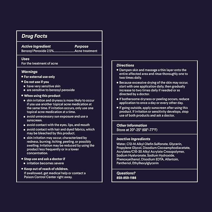 • HELPS TREAT & PREVENT ACNE – 2.5% benzoyl peroxide gently helps treat existing acne and helps prevent new blemishes from forming without stripping the skin