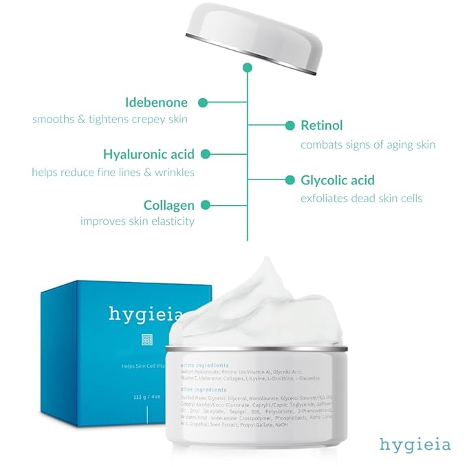 Hygieia Crepey Skin Liposomal Repair Cream – Anti-Aging Crepe Corrector Lotion for Loose Skin (Arms, Neck & Body) & Wrinkles – Retinol & Hyaluronic Acid Firming Cream with Idebenone – Made in USA, 4oz