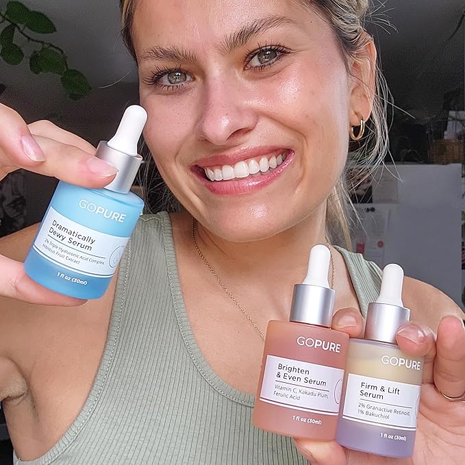 goPure Power Serum Trio Set - Radiant Vitamin C Serum, Hydrating Hyaluronic Acid, Bakuchiol and Retinol for Visibly Brighter, Moisturized, and Firmer-Looking Skin - Set of 3, 1.0 fl oz