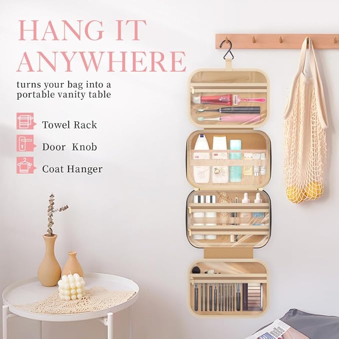 HOTOR Travel Toiletry Bag w/Hanging Hook - Spacious Toiletry Bag Essentials for Women & Men, Makeup Bag/Big Comparment, Waterproof for Travel Accessories, Medium, Pink