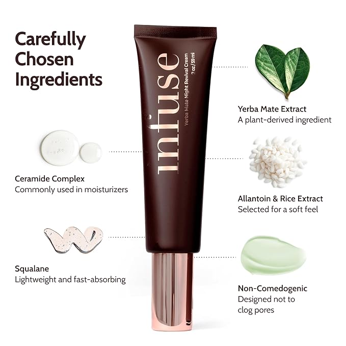 Infuse Skin Yerba Mate Night Revival Cream – Anti-Aging Night Moisturizer with Peptides & Ceramides, Hydrating & Firming Overnight Repair for Mature Skin, 50ml