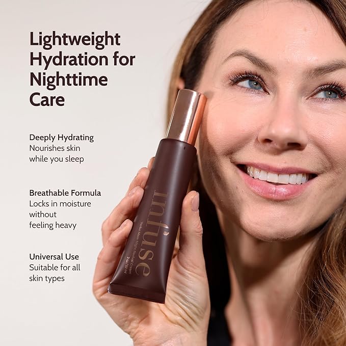 • Deep Hydration & Barrier Support – Infused with ceramides and nourishing emollients that replenish moisture and strengthen the skin barrier while you sleep.