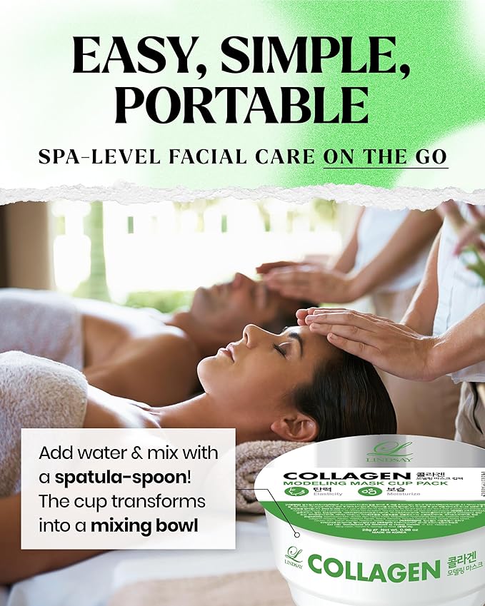 LINDSAY Collagen Modeling Mask Cup Pack - Korean Skin Care Face Mask Modeling Pack – Single-Use Rejuvenating Moisturizing Face Mask w/Spatula Spoon – Spa Facial Peel-off Mask (6 ea, 0.36 lb)