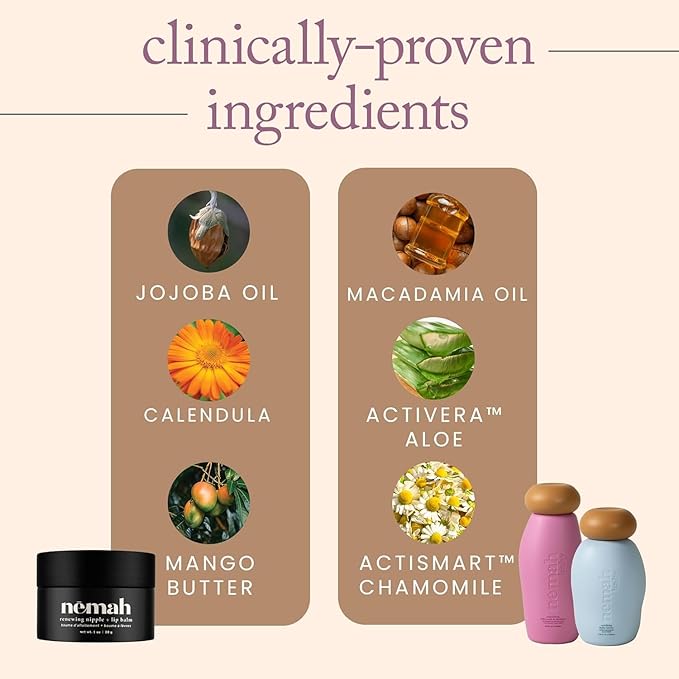 Nemah Gentle Care Essentials Kit, Includes Calming Baby Lotion, Soothing 2-in-1 Baby Shampoo & Wash, and Renewing Nipple + Lip Balm, Pregnancy Must Haves Virtual Bundle