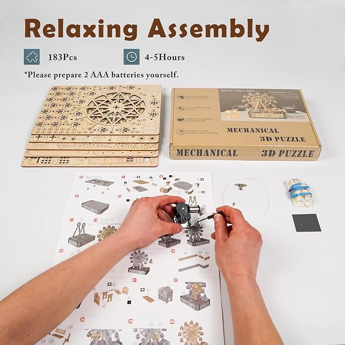 • 【Decorative Brilliance】Beyond its interactive elements, this puzzle stands out as a stunning decorative piece. The assembled Ferris wheel, complete with its intricate details, becomes a focal point that elevates any room's aesthetics.