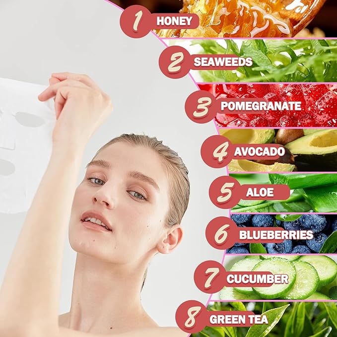 • ❤️【Suitable for All Skin Types】Face masks set is suitable for a variety of skin types, including 8 different fragrances of sheet masks, a variety of your choice.