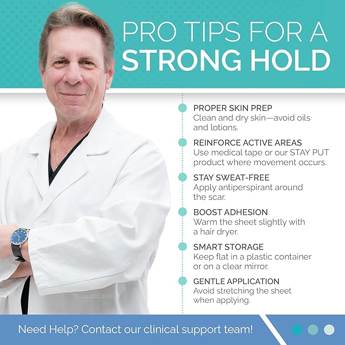 • [DEVELOPED BY A PLASTIC SURGEON & SCARGUARDIAN CLINICAL SUPPORT TEAM TO HELP YOU] – Expertly designed by a U.S. plastic surgeon for optimal healing and comfort. Our products are approved by the medical team and tested by our patient reviewers for ease of use. Silicone strips were originally used for scar healing after surgery - now this is available over the counter!We have U.S. clinical support to assist with any questions or product guidance. If you have any silicone scar tape challenges, our clinical team is available!