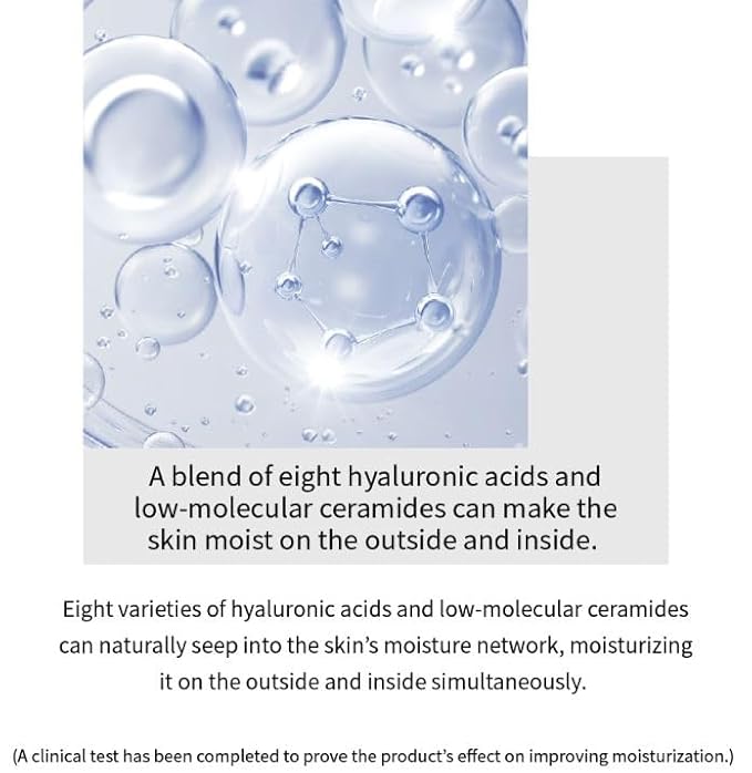 • [8-fold hyaluronic acid] The 'low-molecular ceramide' contained in the ‘8-fold hyaluronic acid’ moisture network naturally flows out when applied to the skin, providing multi-care for inner and outer hydration of the skin.