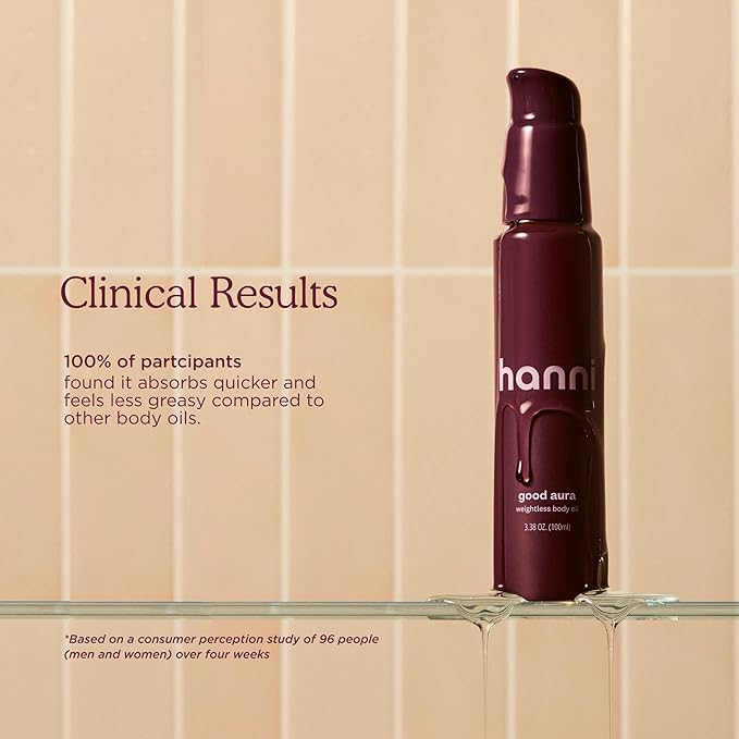 HANNI Good Aura Dry Body Oil, Lightweight After-Shower Moisturizer with Jojoba, Coconut, Baobab, and Buriti Oils, Non-Greasy Skincare for Soft Skin, 100 mL / 3.38 oz