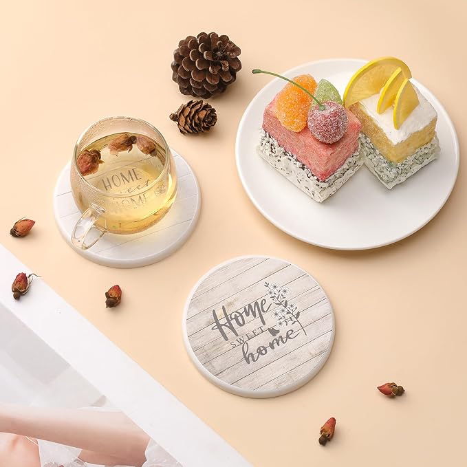 • 【Nature's magic, table essentials】 - Crafted from absorbent diatomaceous earth, these coasters quickly wick away moisture, keeping your tables spotless. The aesthetic soft cork backing adds a touch of eco-friendly style and protects surfaces from scratches, making them both decorative and practical tabletop supplies.