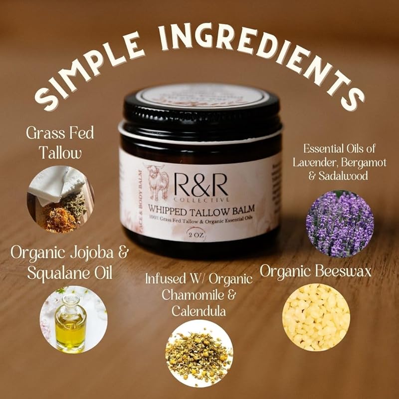 • Ancient Skincare Reimagined: Whipped tallow balm inspired by traditional remedies, formulated for modern skin needs.