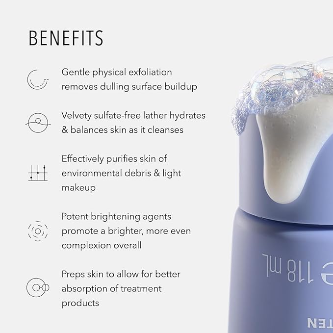 • FOR ALL SKIN TYPES: Velvety sulfate-free lather hydrates and balances skin as it cleanses. Especially for dull, lackluster skin. Uneven tone & texture. Dry & dehydrated skin