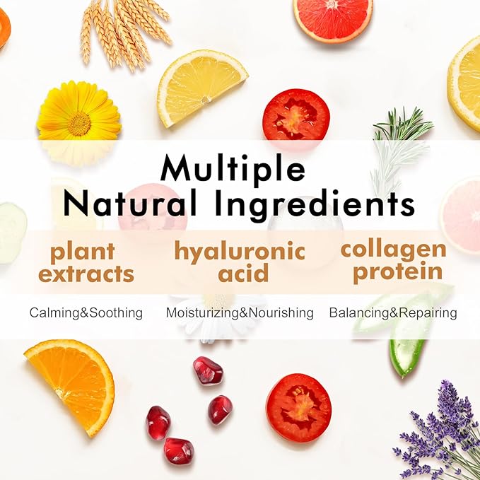 • 【70 Pack Face Mask Gift Set】Our facial sheet masks skincare with 14 natural ingredients like aloe,pomegranate,honey,tomato,ginseng,lavender,sake,oats,grapefruit,chamomile,hyaluronic acid,vitamin C,tea tree,shea butter.Rich collagen essence can be quickly absorbed by the skin,the skin will feel smoother and younger