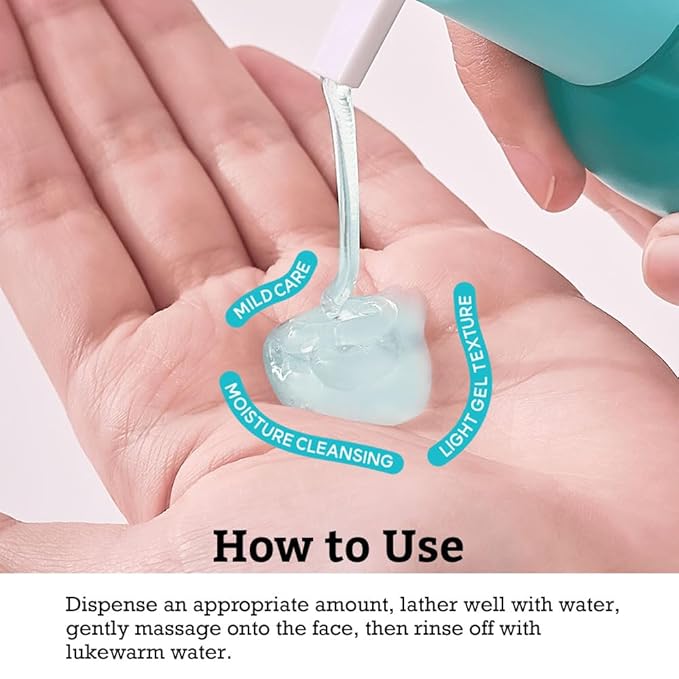 • BOUNCY JELLY TO SOFT FOAM – The cleanser transforms from a bouncy jelly texture to a mild, low pH foam upon contact with water, ensuring a thorough, moisturizing cleanse without leaving skin tight or dry. Gently massage a small amount onto damp skin, creating a soft foam that deeply cleanses pores without stripping the skin. Rinse thoroughly with lukewarm water. Embrace the purity and lightness of facial cleansing with our Gel Cleanser, your gateway to a refreshed and balanced complexion.
