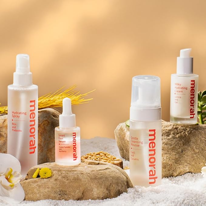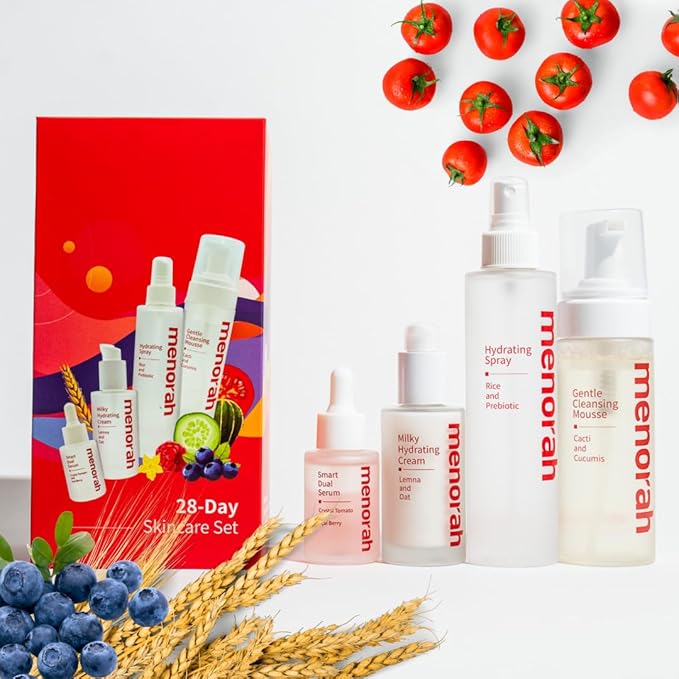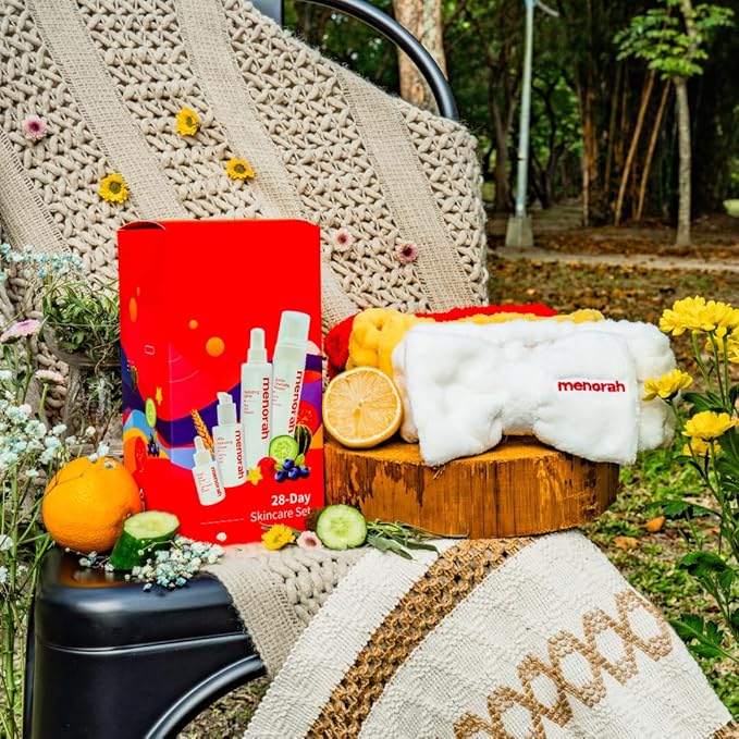 menorah Skincare Daily Skincare Set – Facial Cleanser Foam, Hydrating Toner, Anti-Aging Serum, Moisturizing Cream + Free Headband – Gift Set for Women