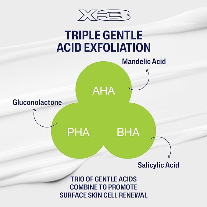 • IMPROVE TEXTURE AND TONE: Formulated with a unique triple acid blend of Salicylic Acid, Mandelic Acid and Gluconolactone, designed to remove excess oil, improve skin tone and retain skin's moisture while exfoliating